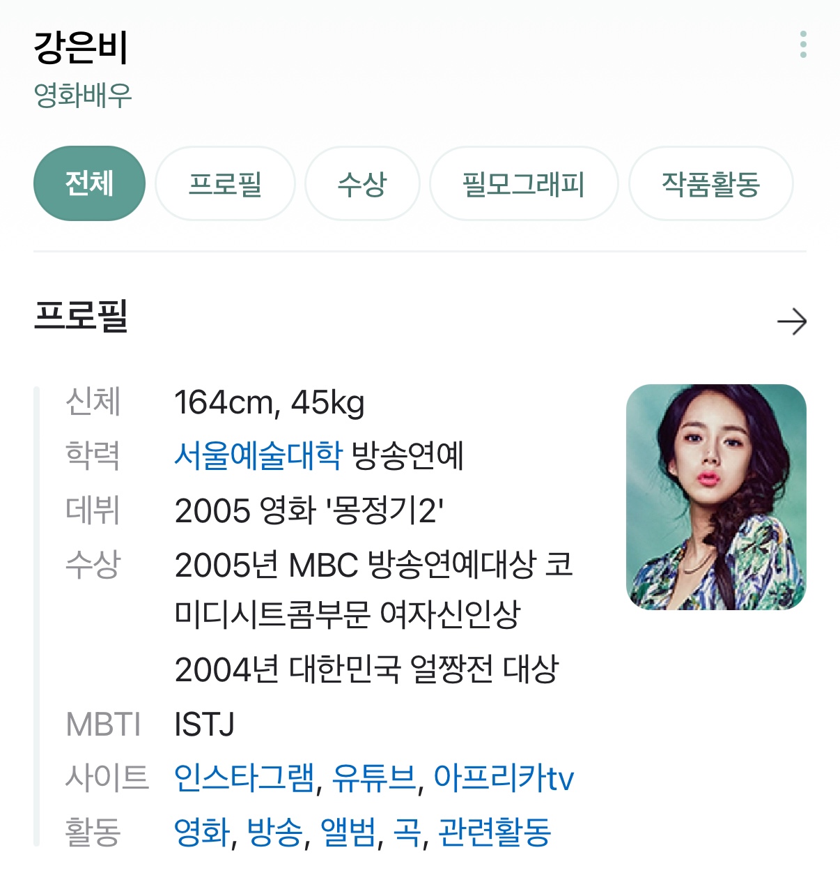 강은비는 배우 출신 크리에이터로, 영화와 드라마에서 활약하다가 현재는 유튜브 채널을 운영하며 다양한 콘텐츠를 제작하고 있습니다. 솔직하고 직설적인 화법으로 많은 팬층을 확보하고 있으며, 연예계 이슈에 대한 거침없는 발언으로도 주목받고 있습니다.